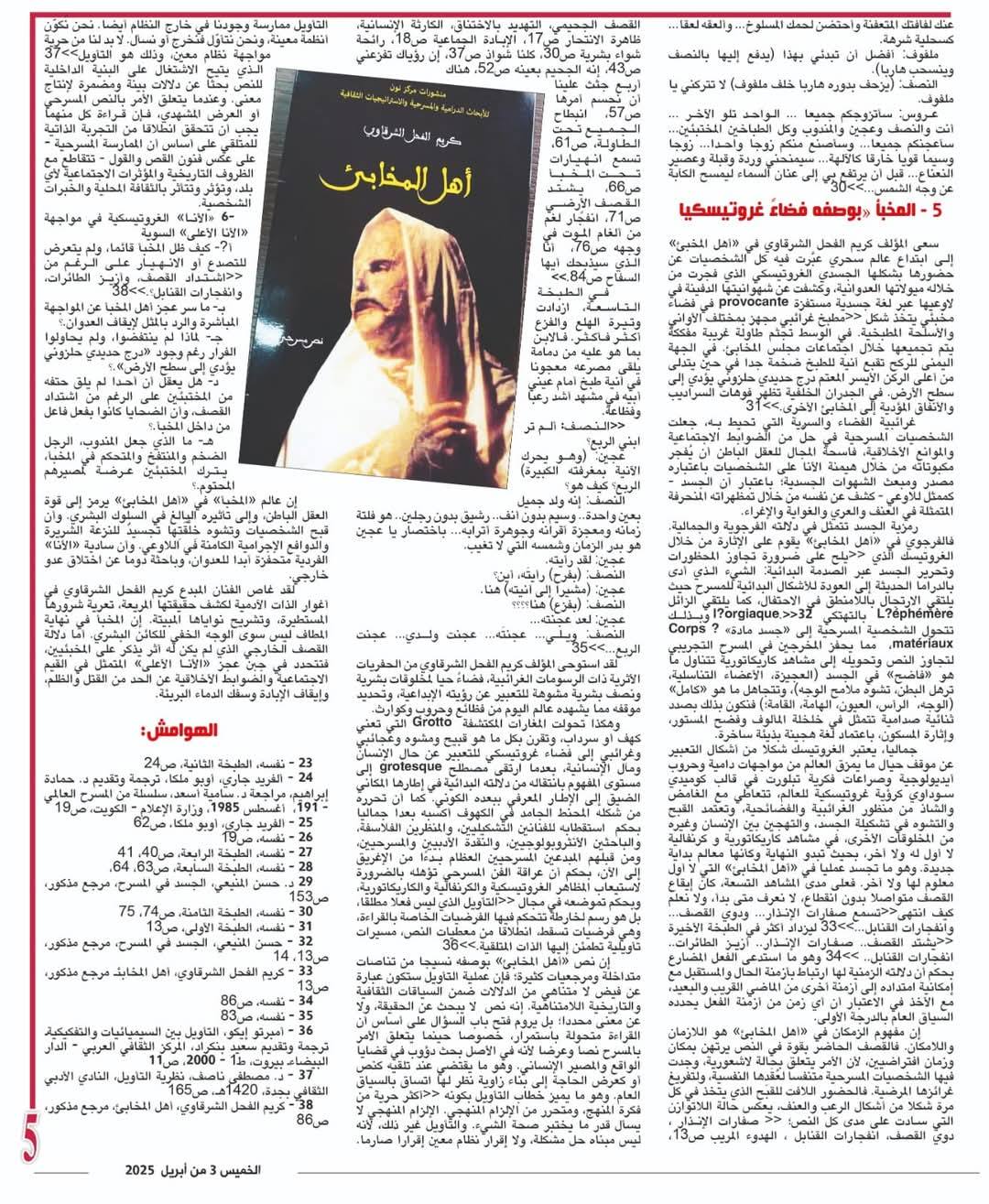 [7] - كريم الفحل الشرقاوي، أهل المخابئ، الطبخة الأولى، منشورات مركز نون للأبحاث الدرامية والمسرحية والاستراتيجيات الثقافية، مطابع الرباط نت – المغرب، ط1 – 2019، ص13
